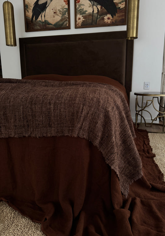 Heavyweight Flax Linen Bedcover - Rich cacao