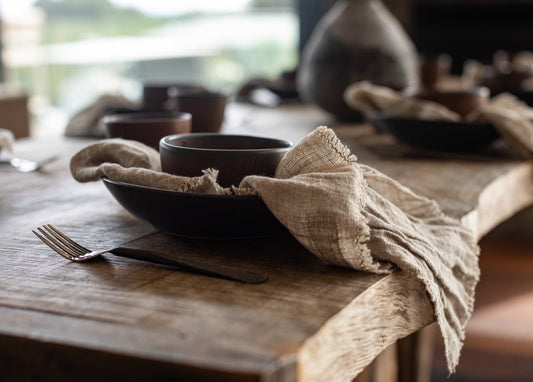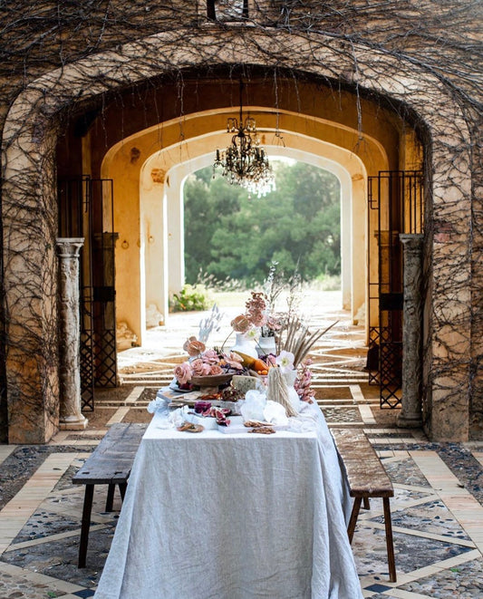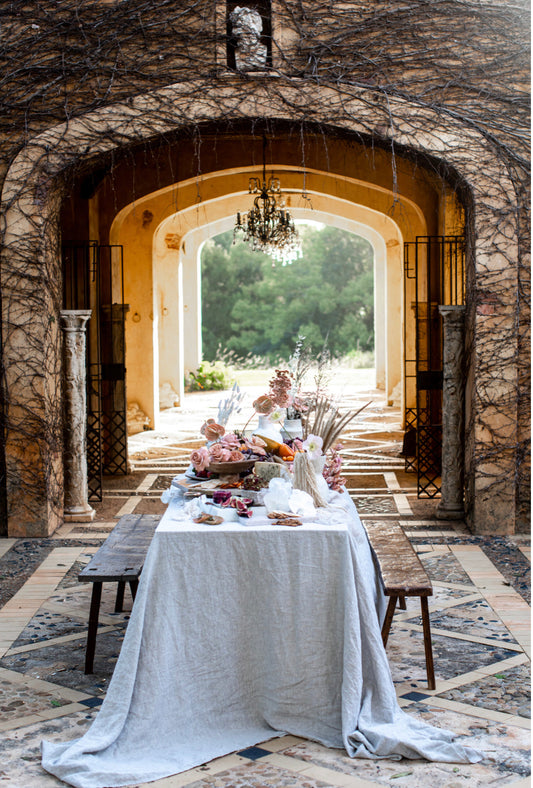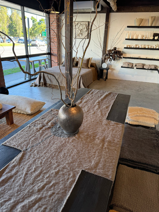 Hand Stitched Linen Tablecloth with Japanese Paper Linen