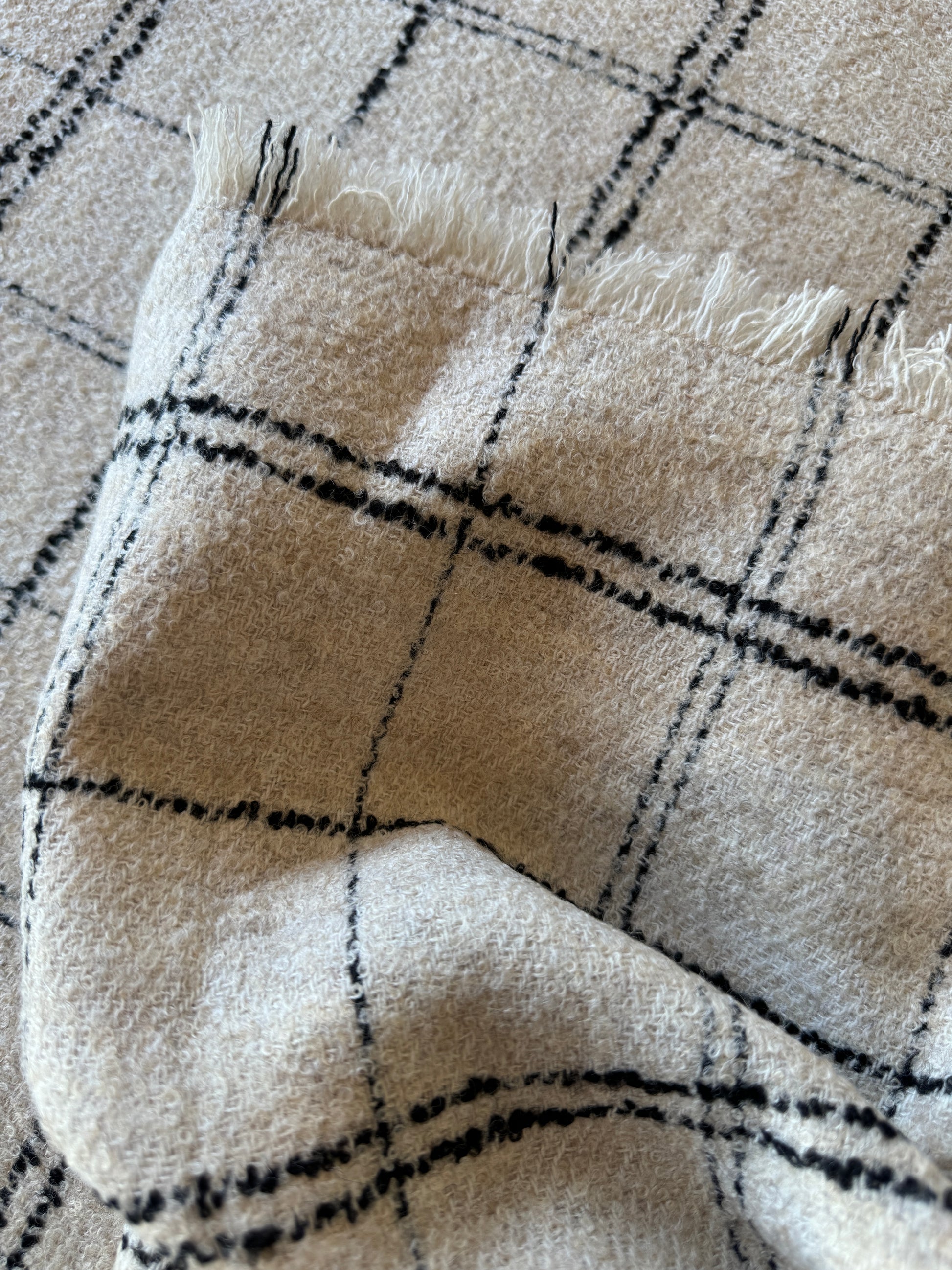 The composition of this fabric is virgin wool. This oversized piece measuring 165cm wide and 300cm long is not only perfect for styling but also functional.