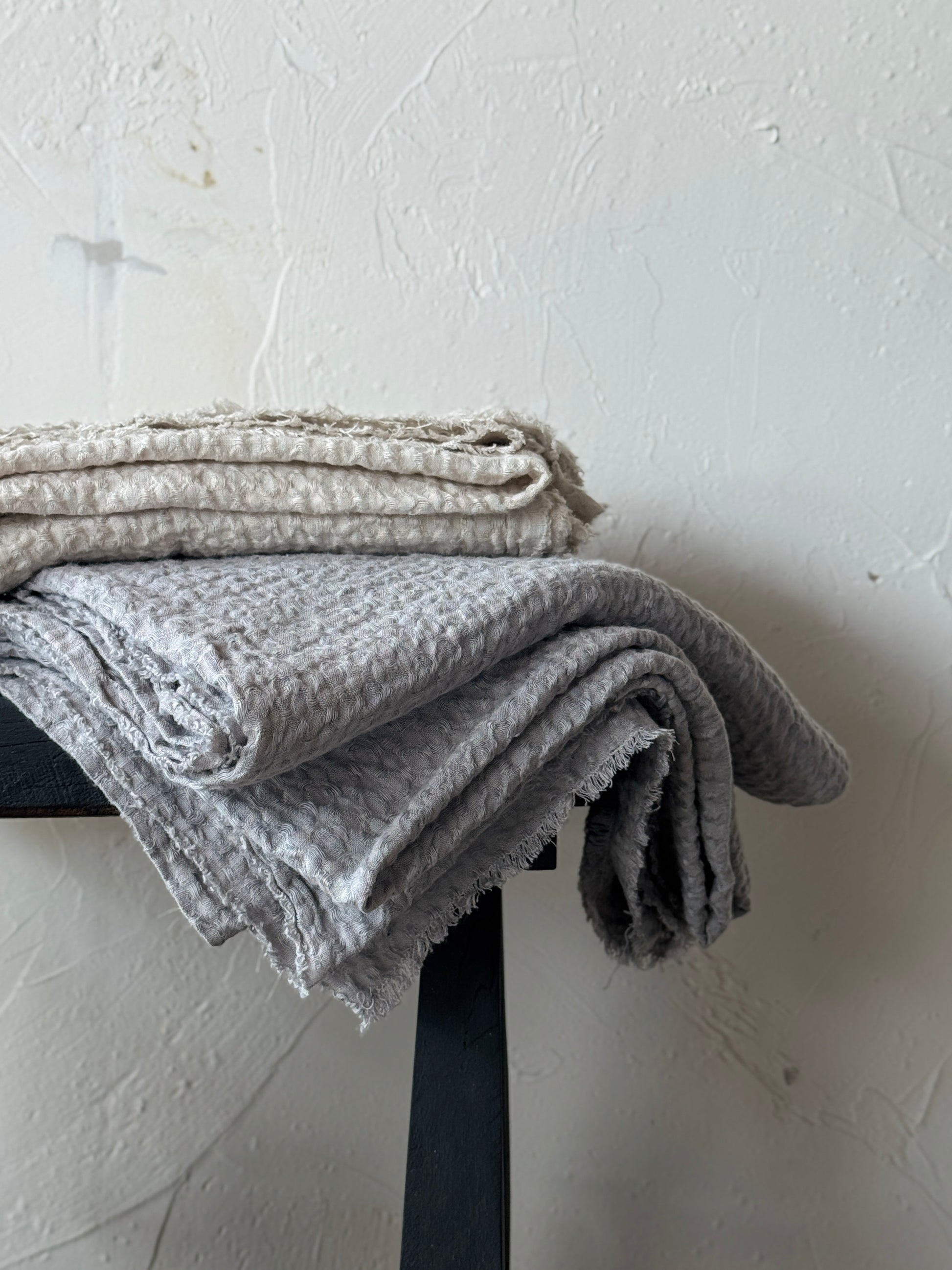 Use pure soap or gentle detergent when laundering linens. We recommend hand washing or gentle machine washing to ensure longevity of this beautiful throw. Use cool to warm water. May be tumble dried on low to medium heat.