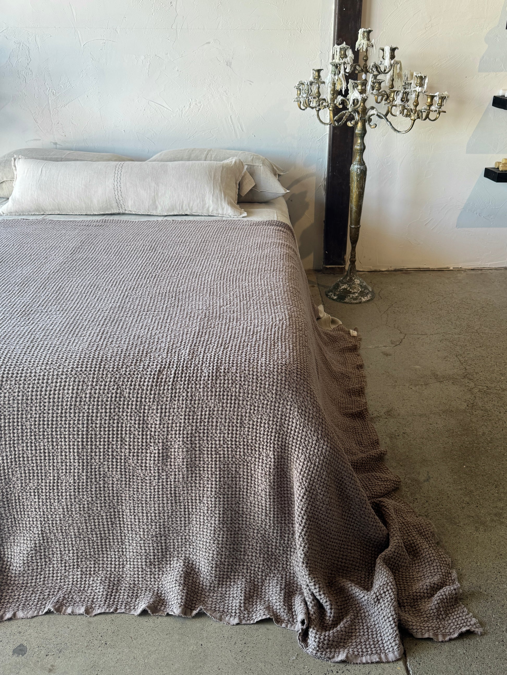 Use pure soap or gentle detergent when laundering linens. We recommend gentle machine washing fringed linens which ensure longevity of this beautiful blanket. Use cool to warm water. You may tumble dry on medium heat. I Italia wash may have some loose threads on the hand frayed ends. Trim off with shears, do not pull.