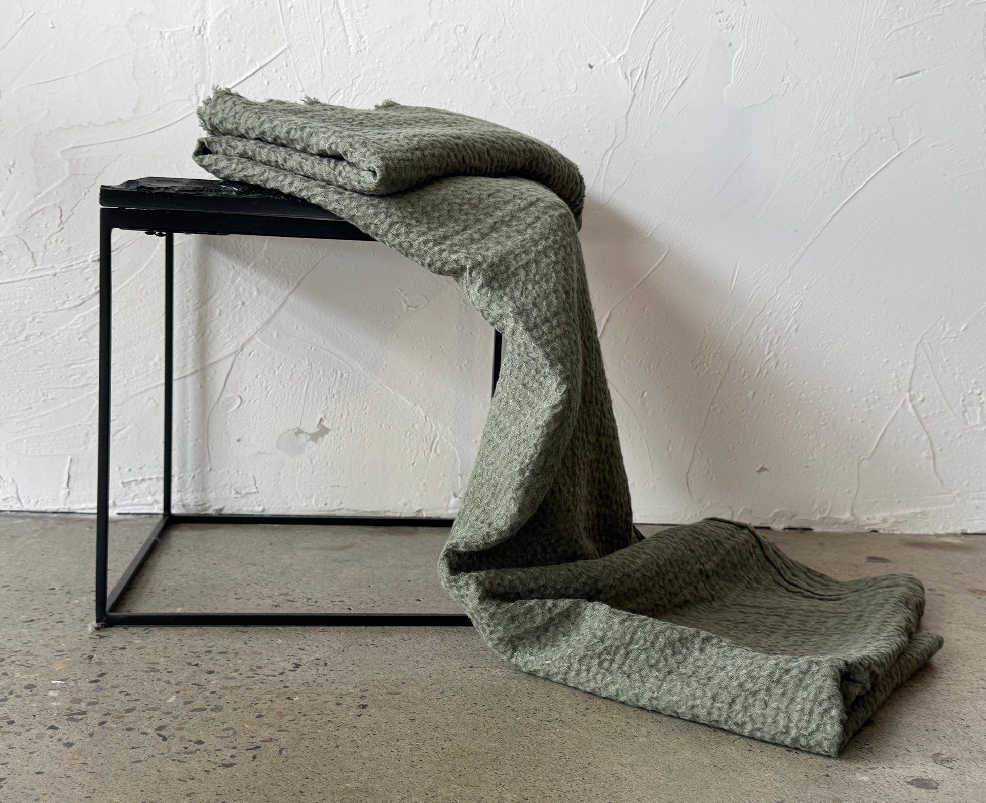 Use pure soap or gentle detergent when laundering linens. We recommend hand washing or gentle machine washing to ensure longevity of this beautiful throw. Use cool to warm water. May be tumble dried on low to medium heat.